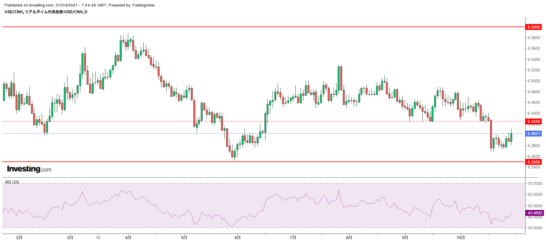 - 想定レンジ:USD/CNH 6.2500~6.4000