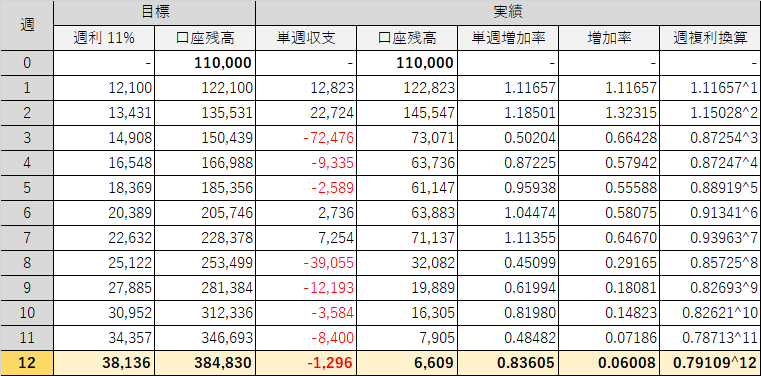 12週お付き合いいただきありがとうございました。どうなってるの?ってくらい負けましたね。色々問題はありましたが外しすぎでしょってくらい負けるし、もうはやく違う口座にしたいってくらいモチベも下がるしw