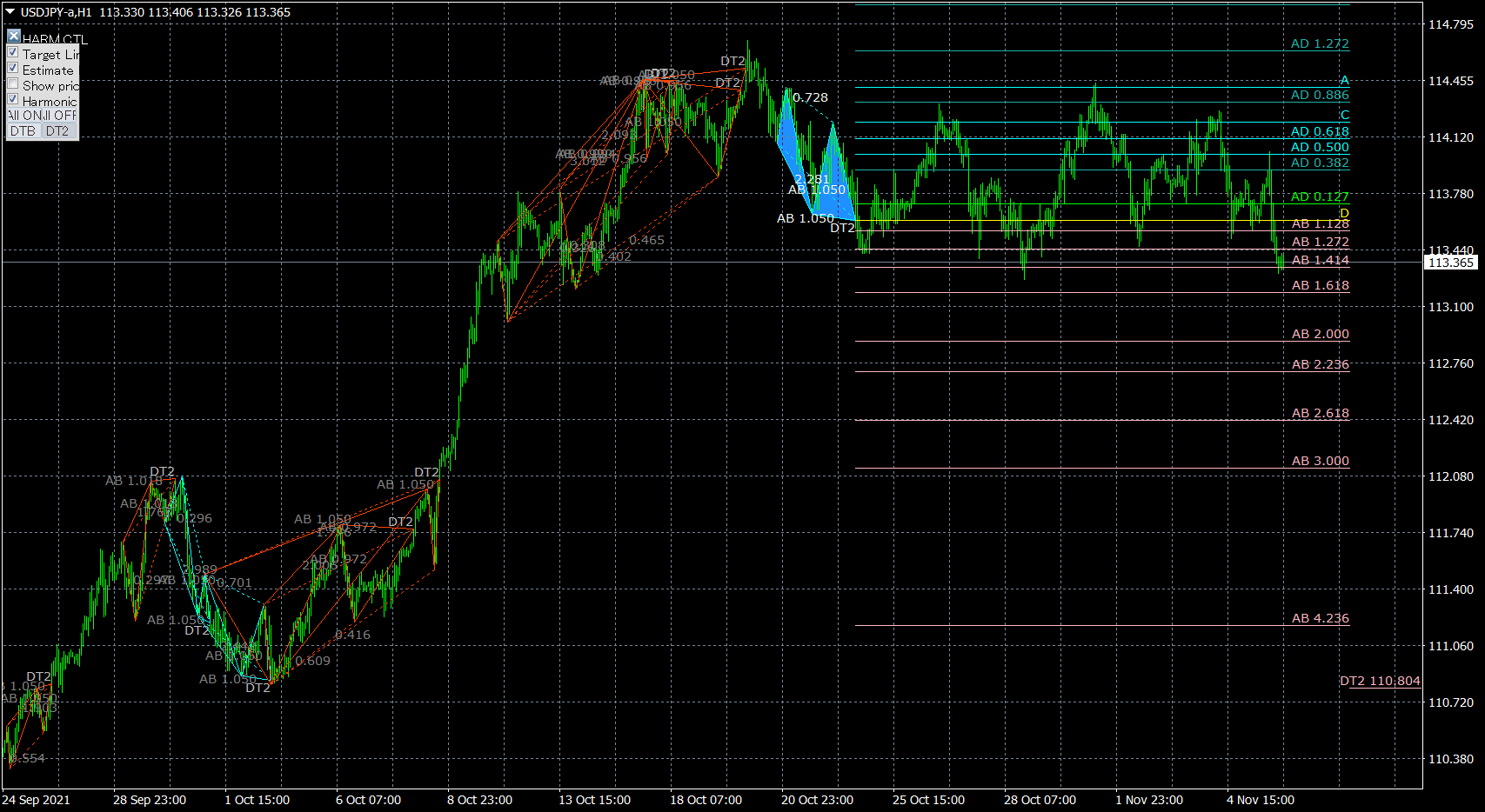 ハーモニックパターン検出インジケータV10についてはこちらへ