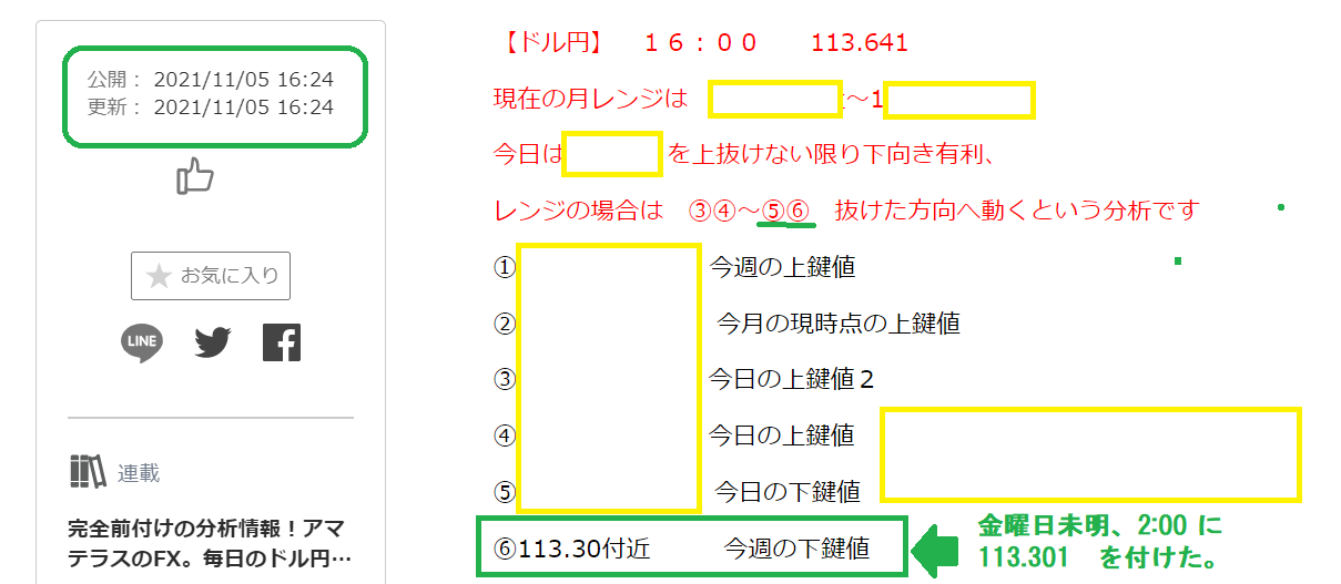 以下は、金曜日のドル円分析記事です。