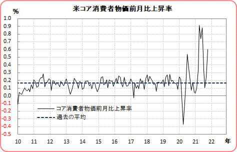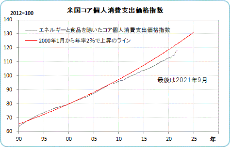 しかし、FRBは、消費者物価でなく、個人消費支出価格指数の長期トレンド2%を重視していると言っており、これだと、過去のトレンドに乗るのは、乗ったとしても相当先のことになる。市場は、消費者物価上昇率を見てインフレ懸念をもつが、FRBは、それでも利上げはまだまだということになるかもしれない。