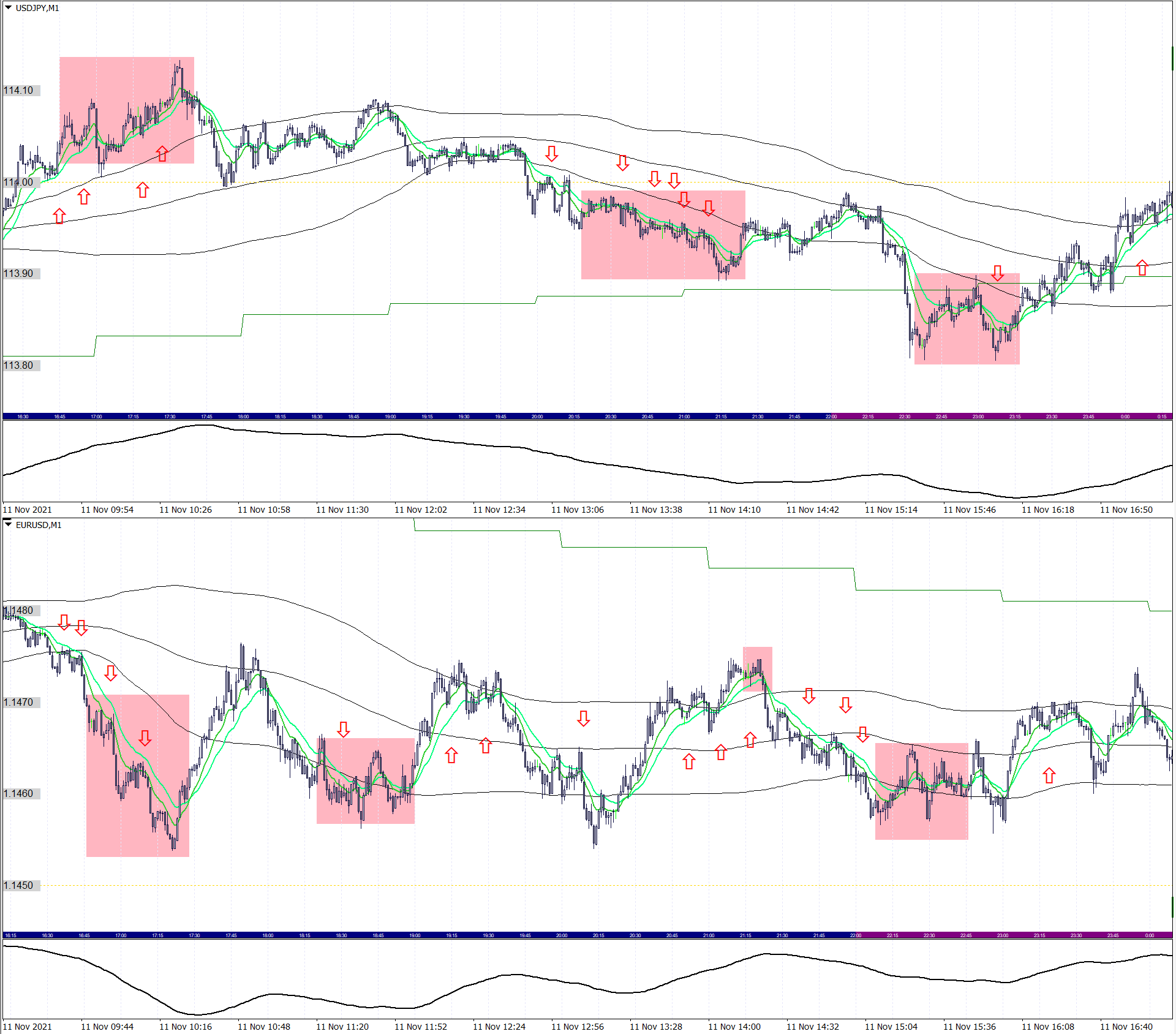 11/11 【1日+10pips楽度★★★★★】1分足レベルの小さい波は、ちょこちょこ+10pips