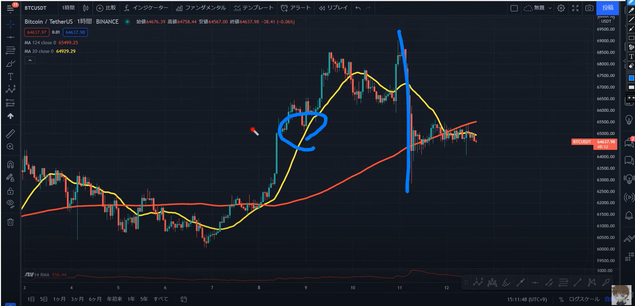 BTCビットコイン注目ポイント!11/15元金融機関勤務プロトレーダーMASA式暗号資産(仮想通貨)トレード戦略徹底解説!