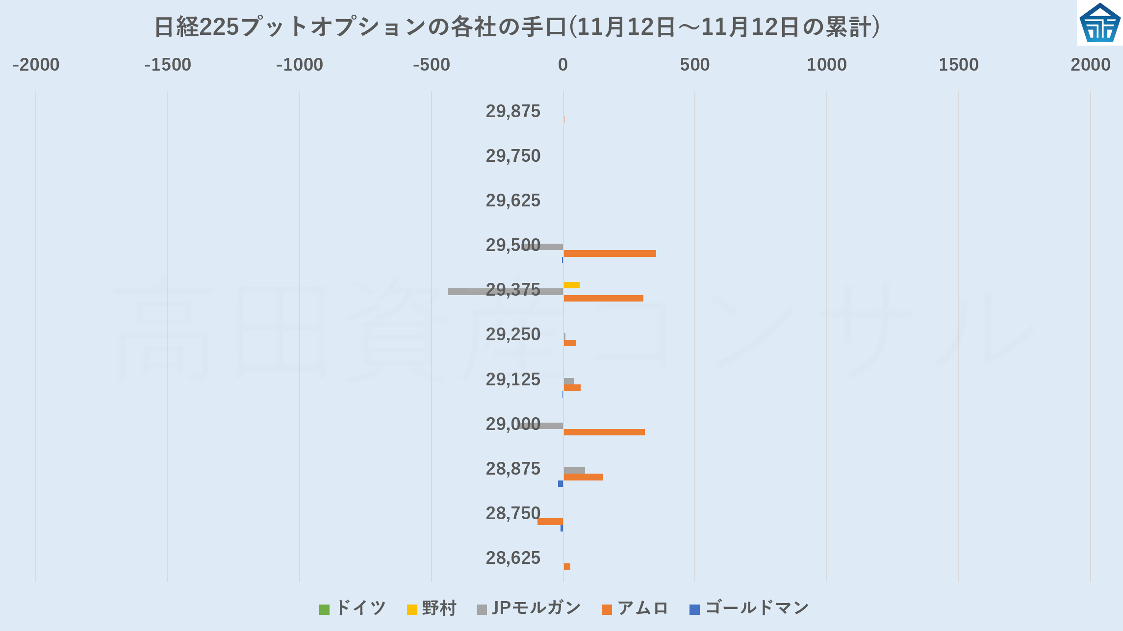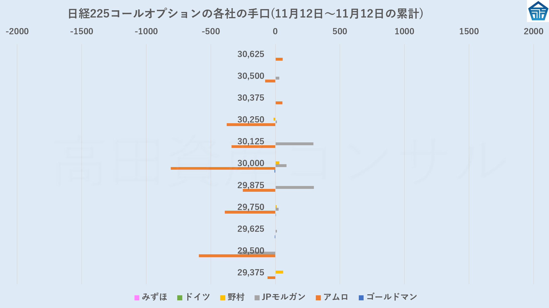 11月15日朝更新、海外勢の先物手口、オプション手口、クロス取引、日経225先物、日経225オプションの手口の読み方