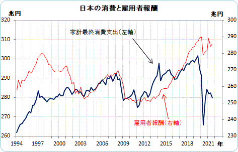 雇用者報酬がそれほど減ったわけではない。消費が落ち込んだままなのだ。