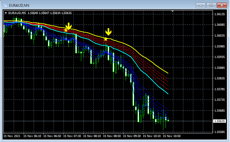 RCI, MA, GMMAなどとの組み合わせで威力を発揮するインジケーター 11月15日~11月19日に見られたサインの例