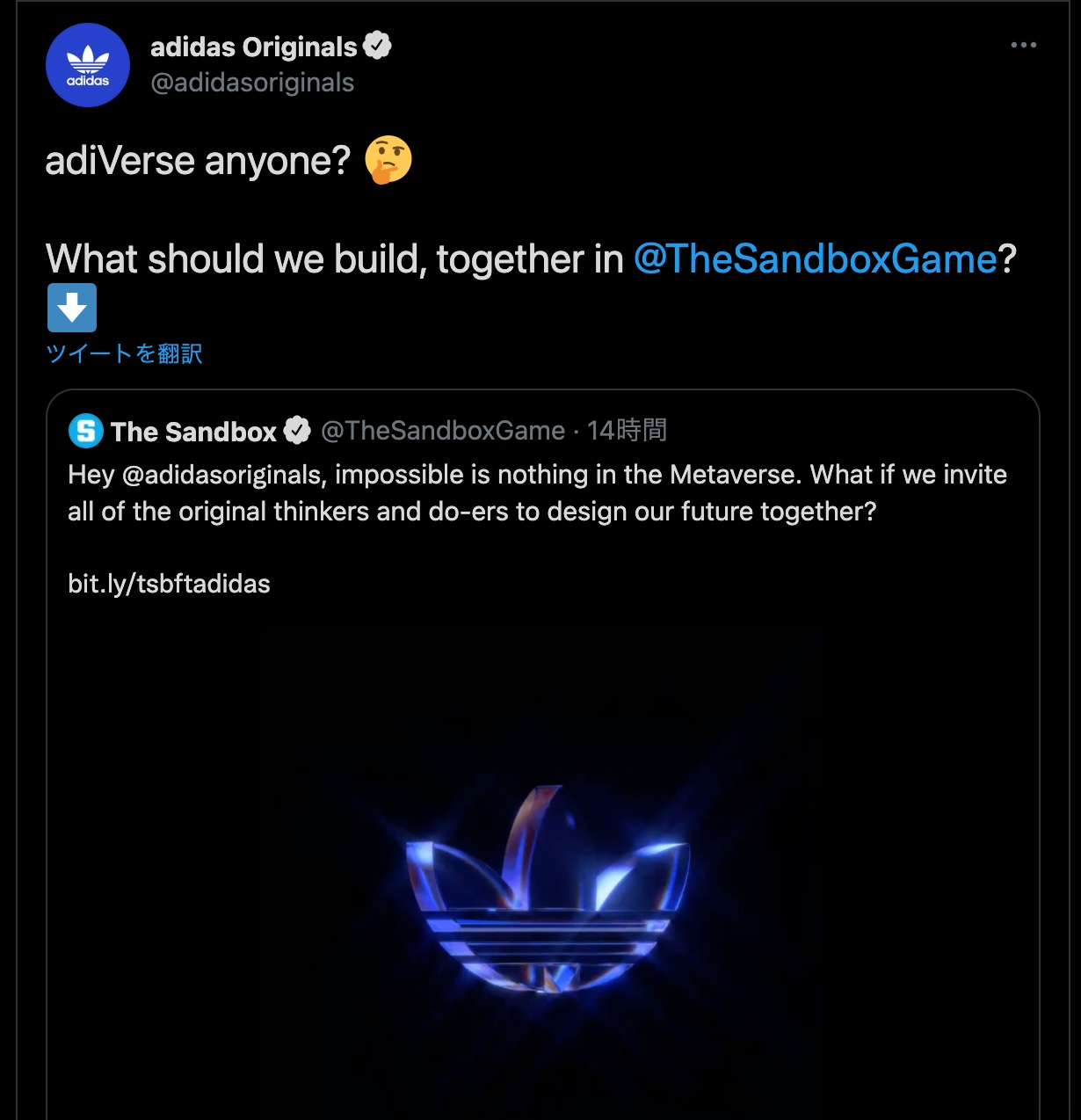 アディダスがサンドボックス内で