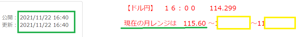 水曜日に115.51を付けた、先週のドル円の月曜日の記事です。