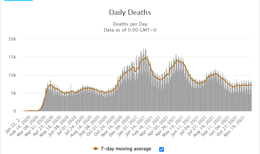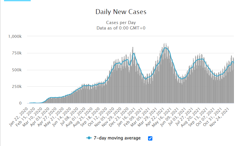 - 新規死亡者数は落ち着いておりオミクロンの感染拡大が以前ほど大きな死者数増加につながらないように見える(添付チャート Daily Deaths )