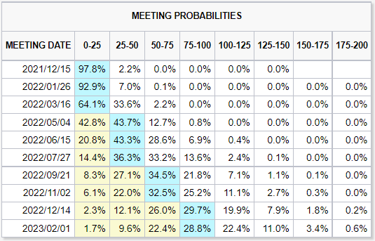 - そう言った状況の中で、市場参加者の米国政策金利引き上げ見通しは、1回目の利上げが2022年5月、2回目の利上げが2022年9月へと前倒しになってきている。インフレ圧力が強く、またFED高官からも早期のテーパリング完了を匂わせる発言が出てきたことも影響している。