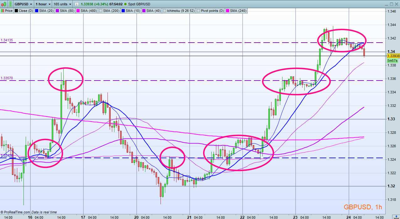 さて、以下の画像は、私が普段使っている1時間足のチャートです。
