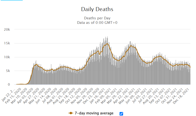 COVID-19 新規死亡者数, Worldmetersより抜粋