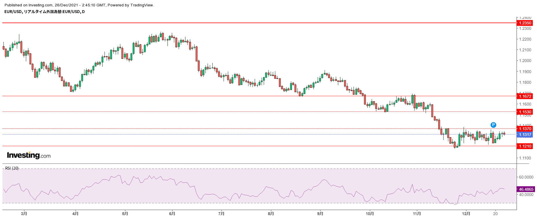 - ただしオミクロン動向には要警戒。年末で市場参加者が少なく、ボラタイルな相場になることを想定し、ポジションは少な目に。
