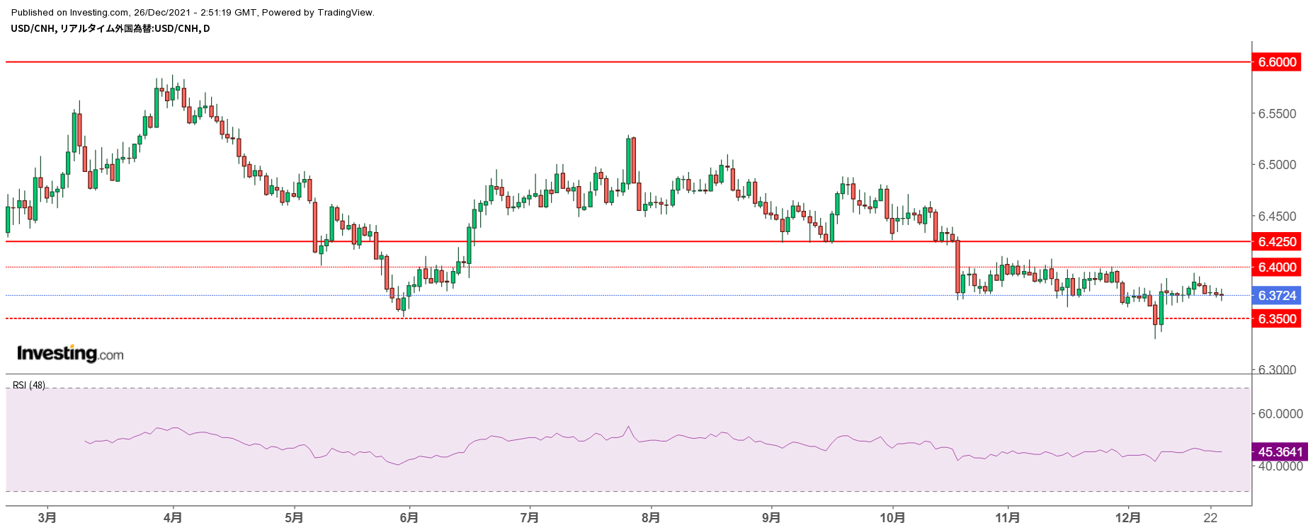 - 想定レンジ:USD/CNH 6.3500~6.4250