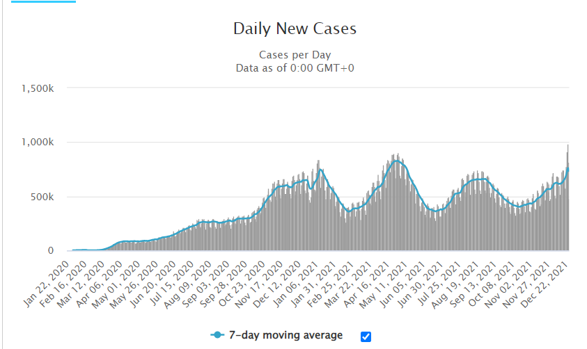 - コロナ新規死亡者数の推移(7日移動平均)は下向き(添付チャートDaily New Cases )。この結果もリスクオンの要因になっていると感じる。