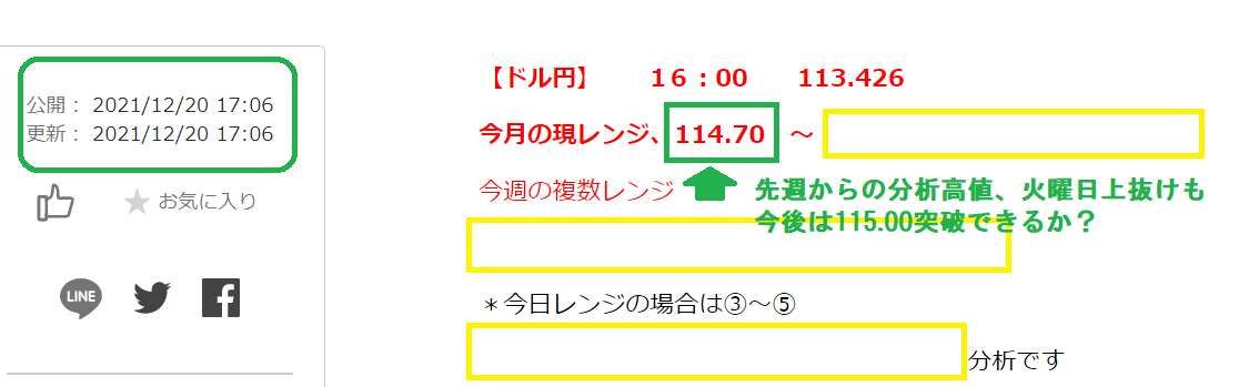*12月20日時点での月のレンジ高値分析値は114.70でした。