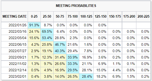 市場参加者のFOMC利上げ予想, CME Group より抜粋