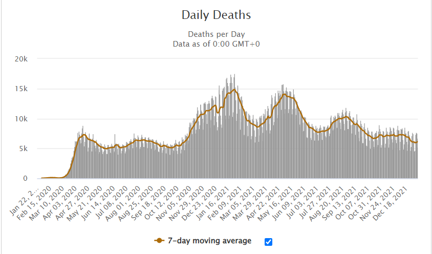 COVID-19 新規死亡者数, Worldmetersより抜粋