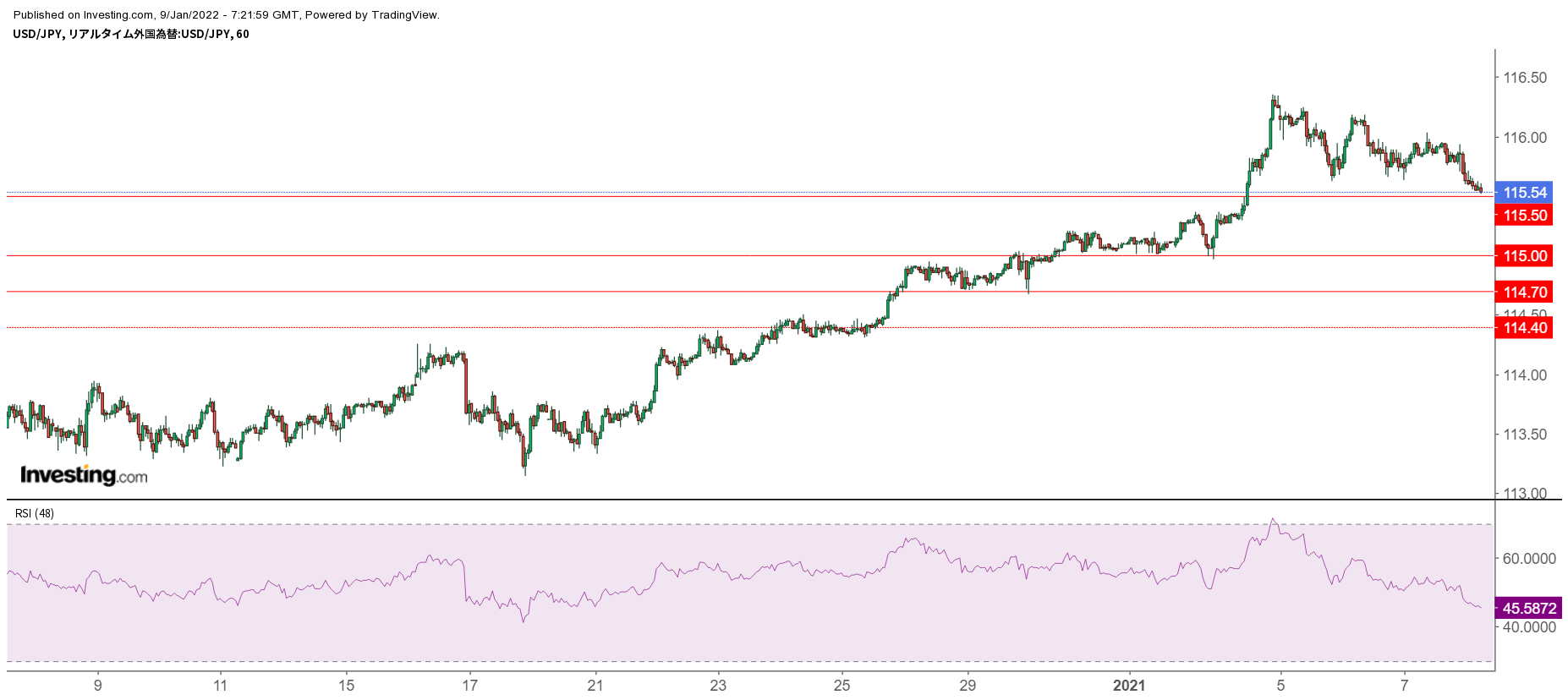 - 115.50、115.00をバックに買い下がっていき、持ち値のよいロングを持ちたい