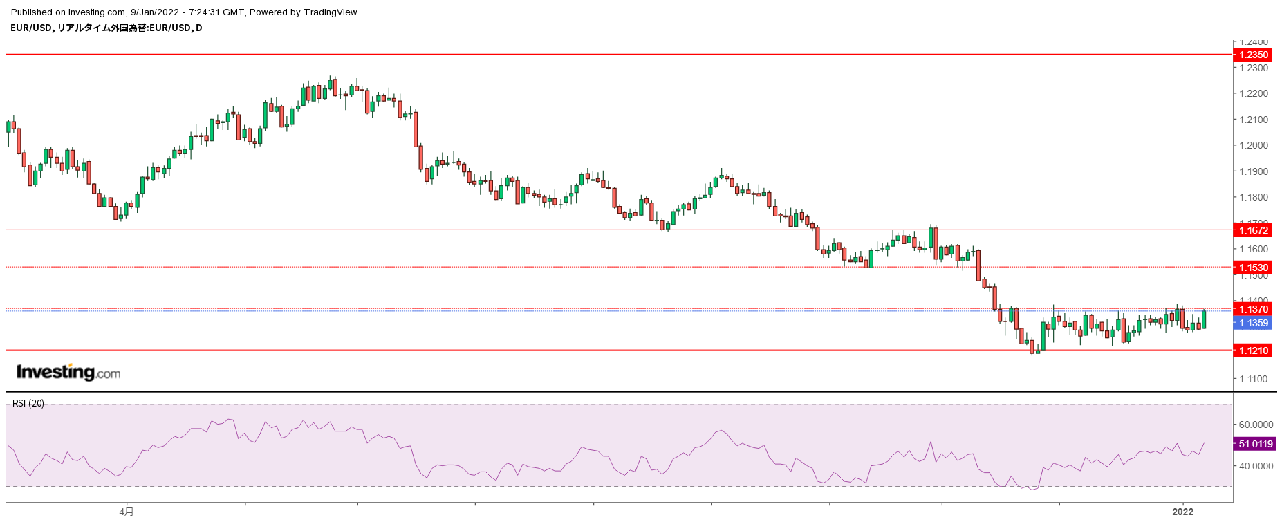 - ユーロは1.1370前後での反転を期待してまずは週明けに売りポジションを構築