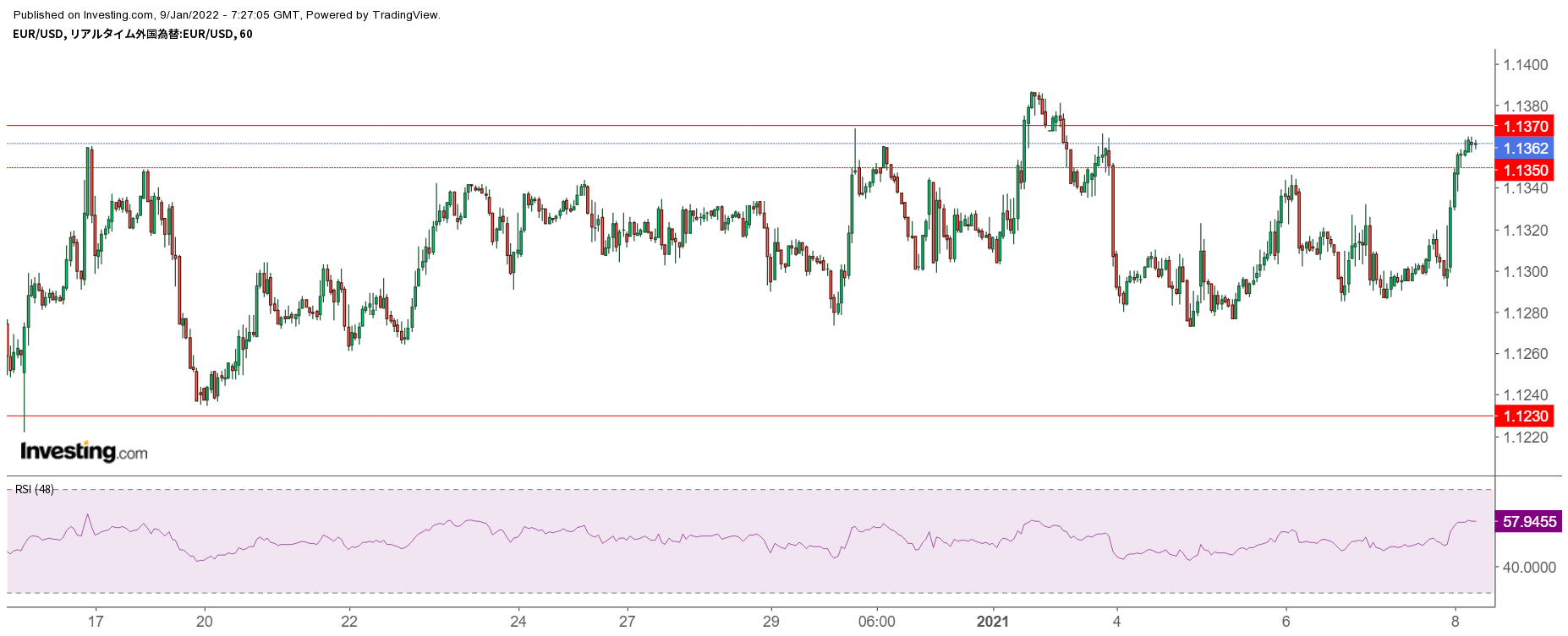 - 1.1370は一時的に抜けているものの、完全な上抜けとして判断するのは時期尚早