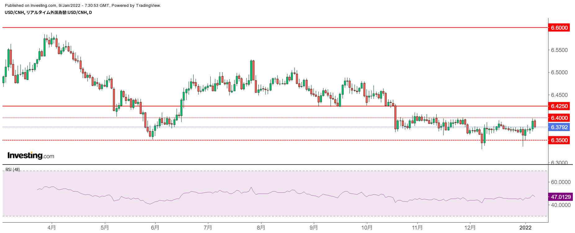 - 想定レンジ:USD/CNH 6.3500~6.4250