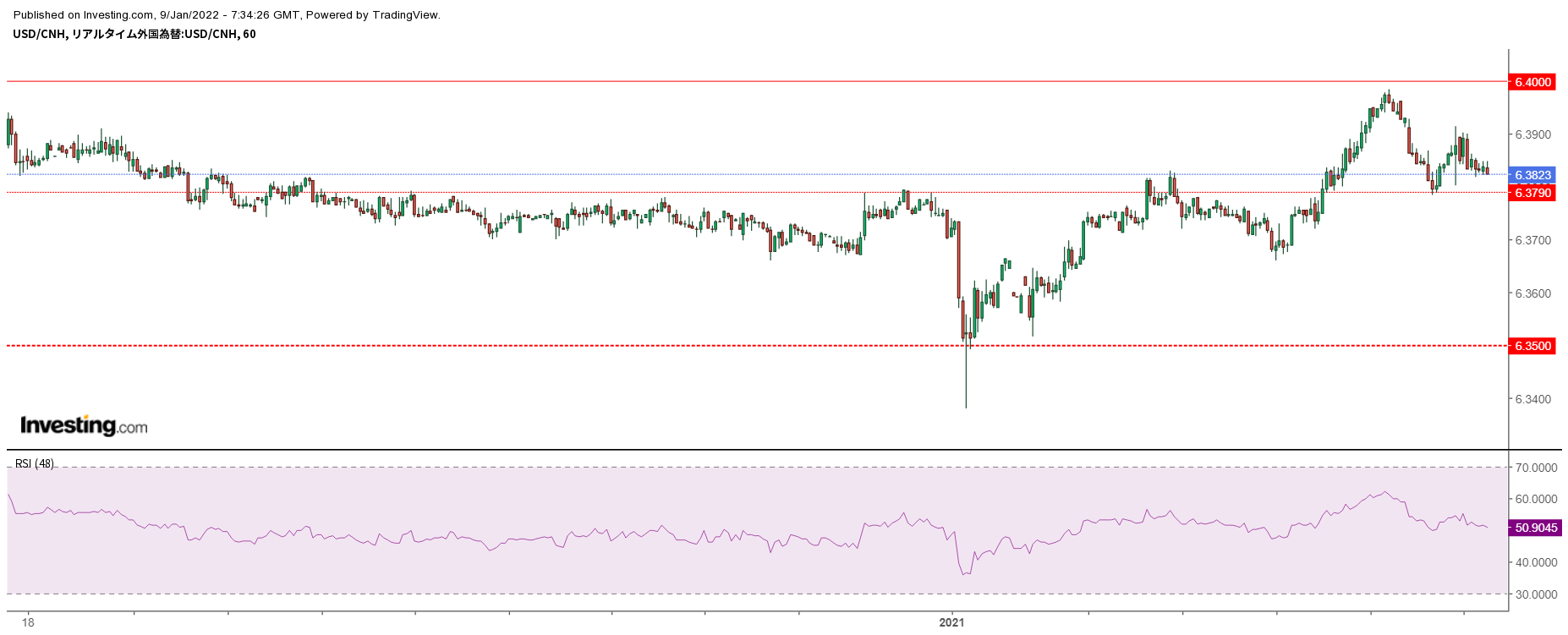 - 現在は狭いレンジで6.3790~6.4000での推移が続いている