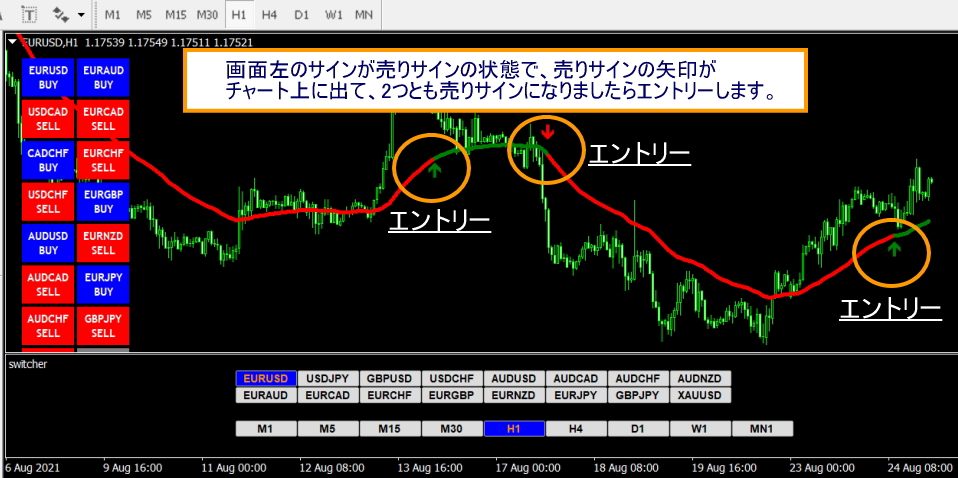 こちらのインジケーターだけでも、エントリーの判断が出来ます。