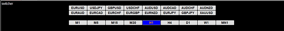 全通貨対応の便利や通貨と時間足の切り替えインジケーター。チャートのサブウィンドウに表示されます。