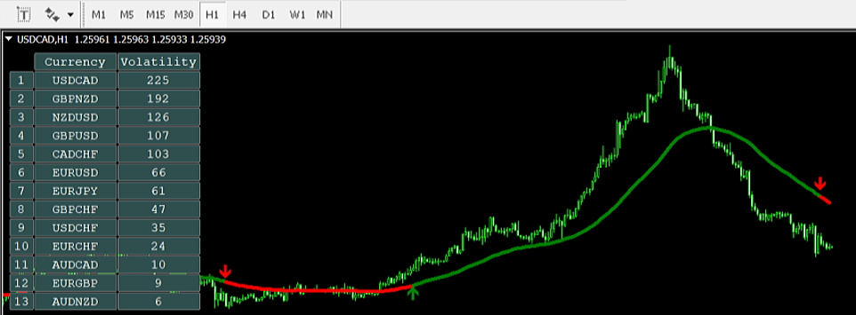 例えば、上記の画像の場合、USDCAD、GBPNZDの通貨がよく動いているので、USDCAD、GBPNZDの通貨で取引をしましたら、大きなトレンドに乗って大きな収益を狙えます。
