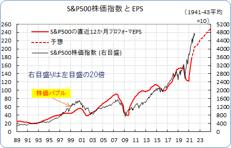 まずは、(1)米国株相場とEPSの関係 (グラフ参照)