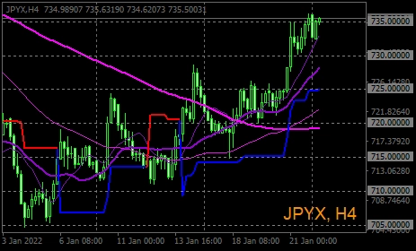 こちらは円インデックス。週前半は安値を確認後、高値を窺い、その後後半でブレイク。