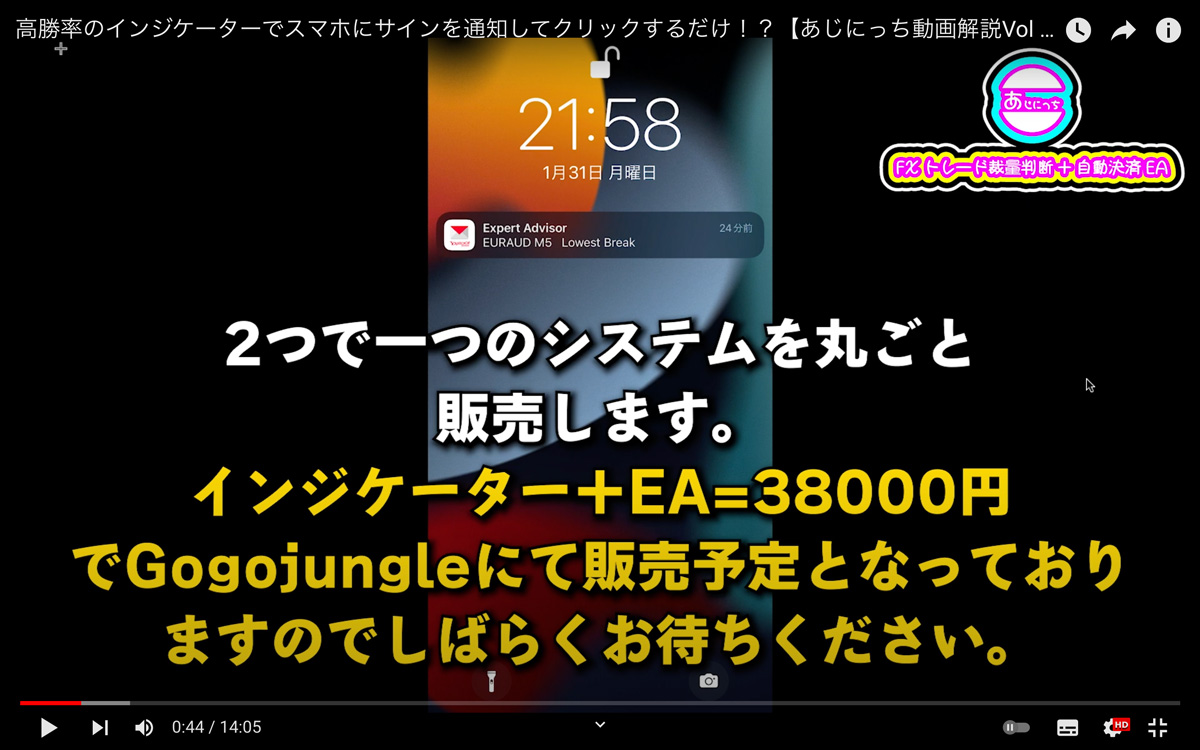 近日発売予定の『あじにっち』と言うハイブリッドFXトレードシステムの詳細について動画解説しました。