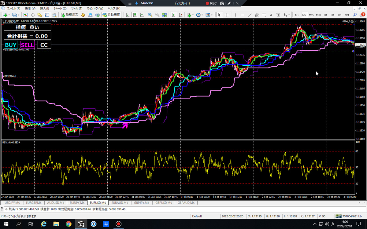 またCCと言うボタンがメインチャート上に表示されており、それをクリックすると全てのポジションが決済され、指値・逆指値・などの仕掛けも全てリセットされます。 全ペア通貨が一斉に決済されるので、安心してリラックスできる時間を過ごすことができます。