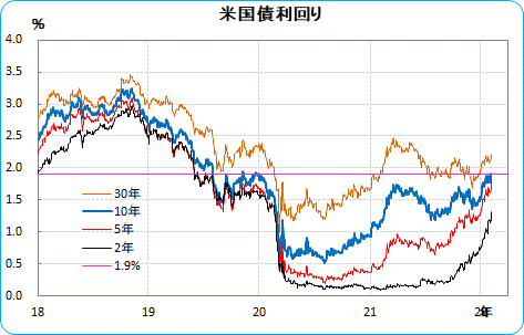 とうとう10年国債利回りは1.9%を越えた。これ以上上昇したら、市場が金融引き締めを強く意識するであろうから、株式のPERがさらに低下していく可能性が高い。株のbuy & Hold は難しい。