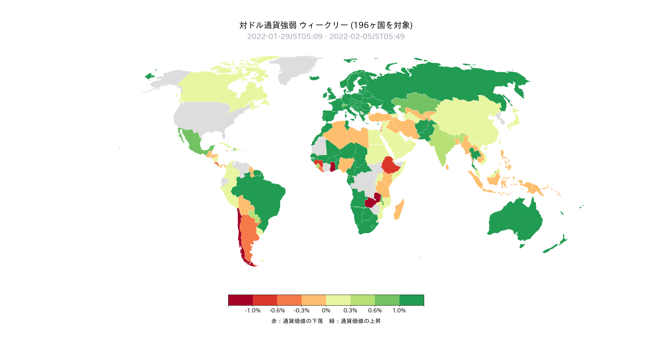 - 先週はドル売りが優勢(149/196ヶ国)。一方的に進んできたドル買いの調整局面となった。