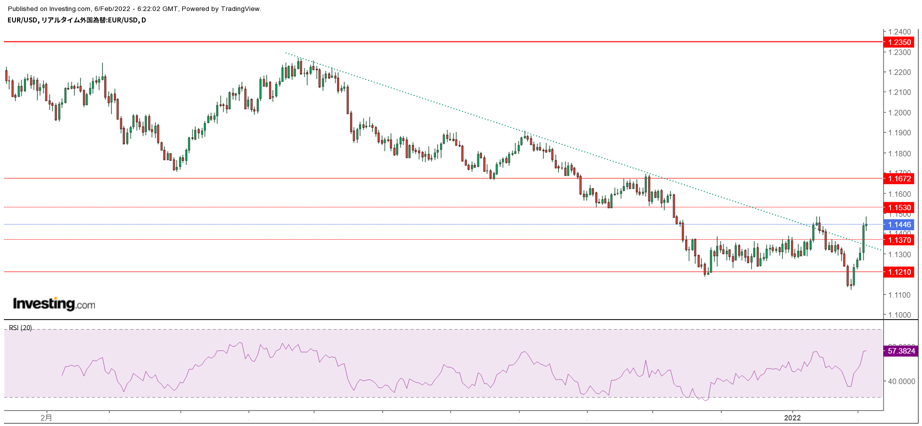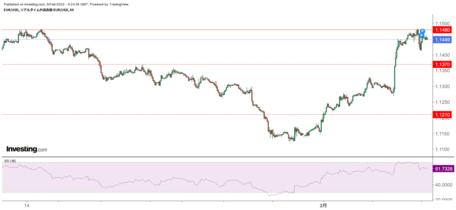 - 先週末の終値:EUR/USD 1.1446