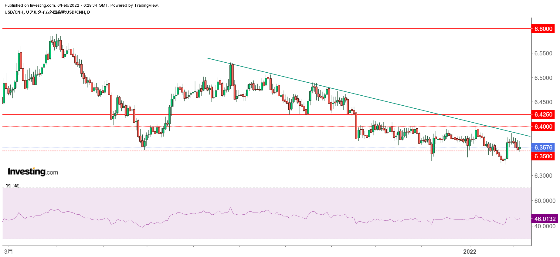 - USD/CNHが6.40をクリアに上抜けてくるようなら撤退を検討