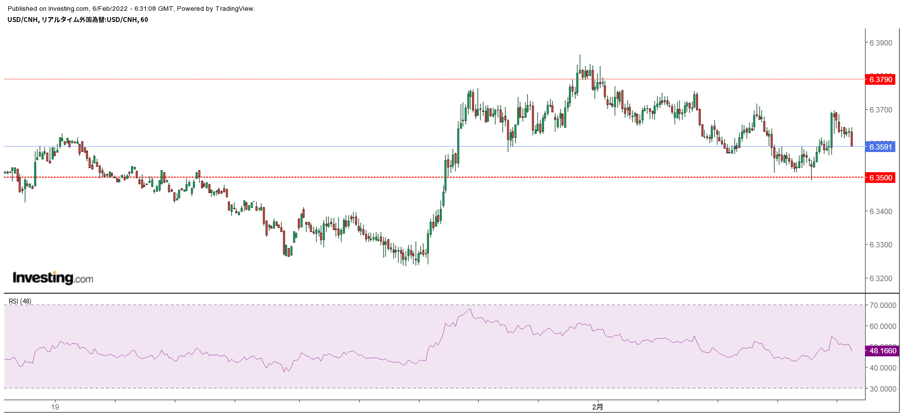 - 先週末の終値:USD/CNH 6.3576