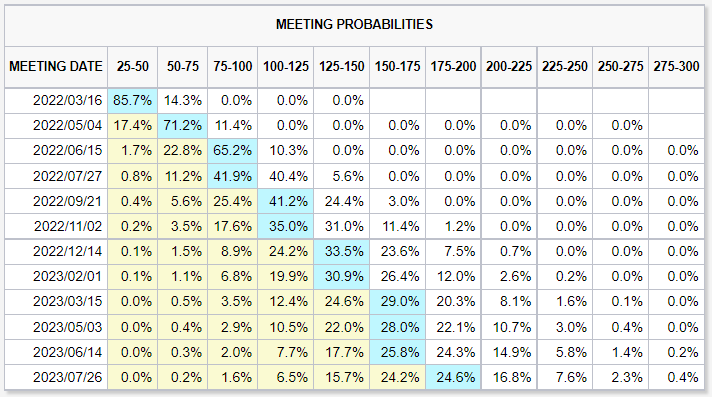- 金利先物市場の85.7%の参加者は今年3月の米利上げ開始(25bps)を見込んでいる