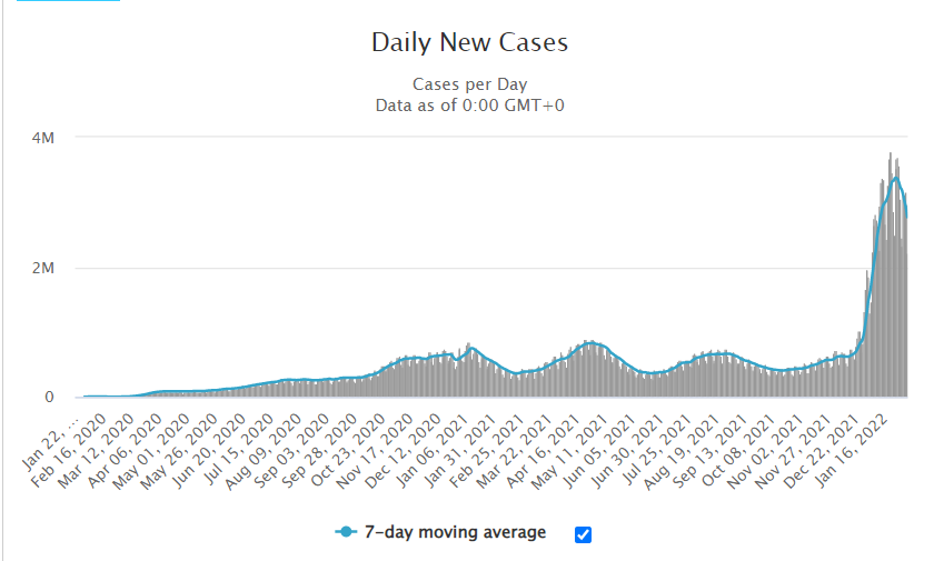 - コロナ新規「感染者」数の推移(7日移動平均)にはやや頭打ちの傾向も見えてきた(添付チャートDaily New Cases )