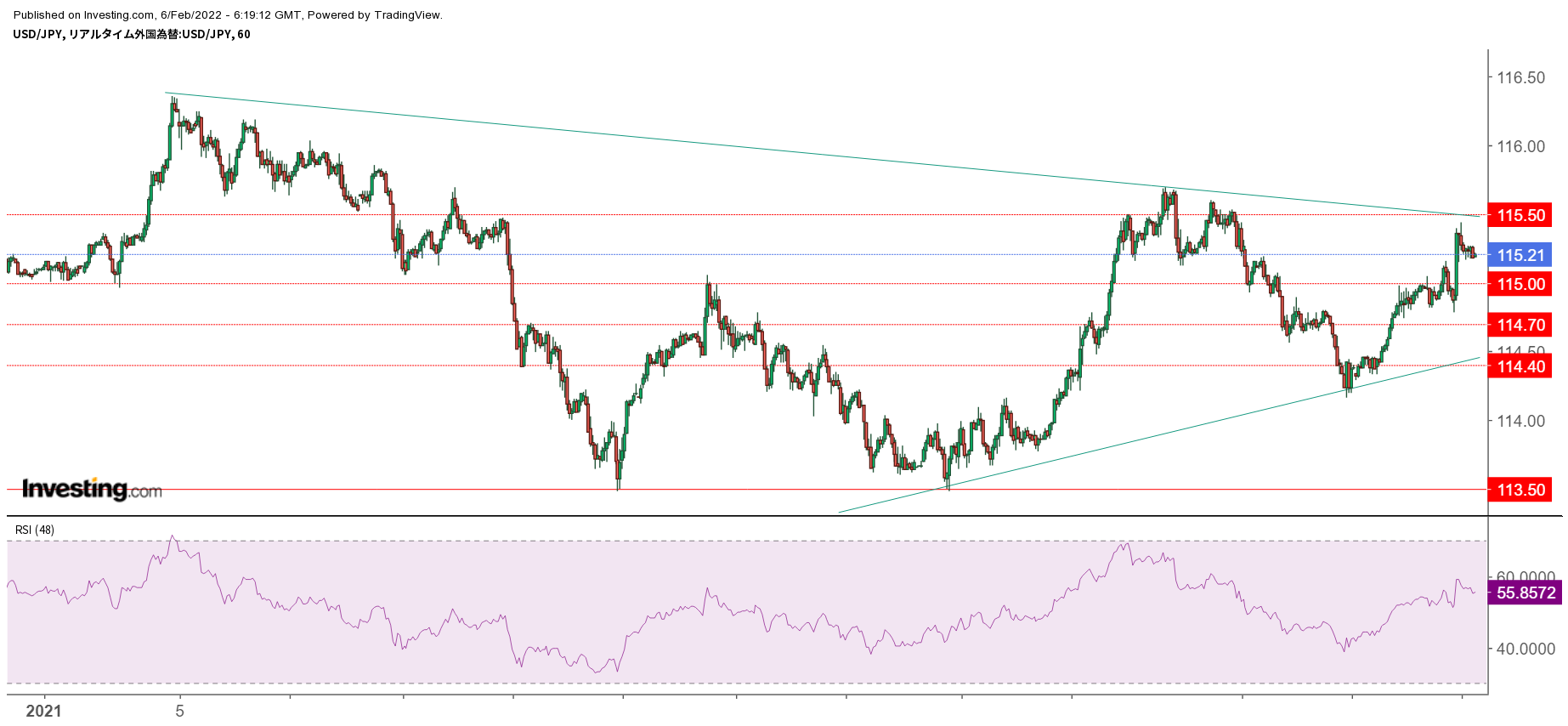 | USD/JPY | 115.21 | 114.17 | 115.60 | 115.20 | ▲0.01% |
