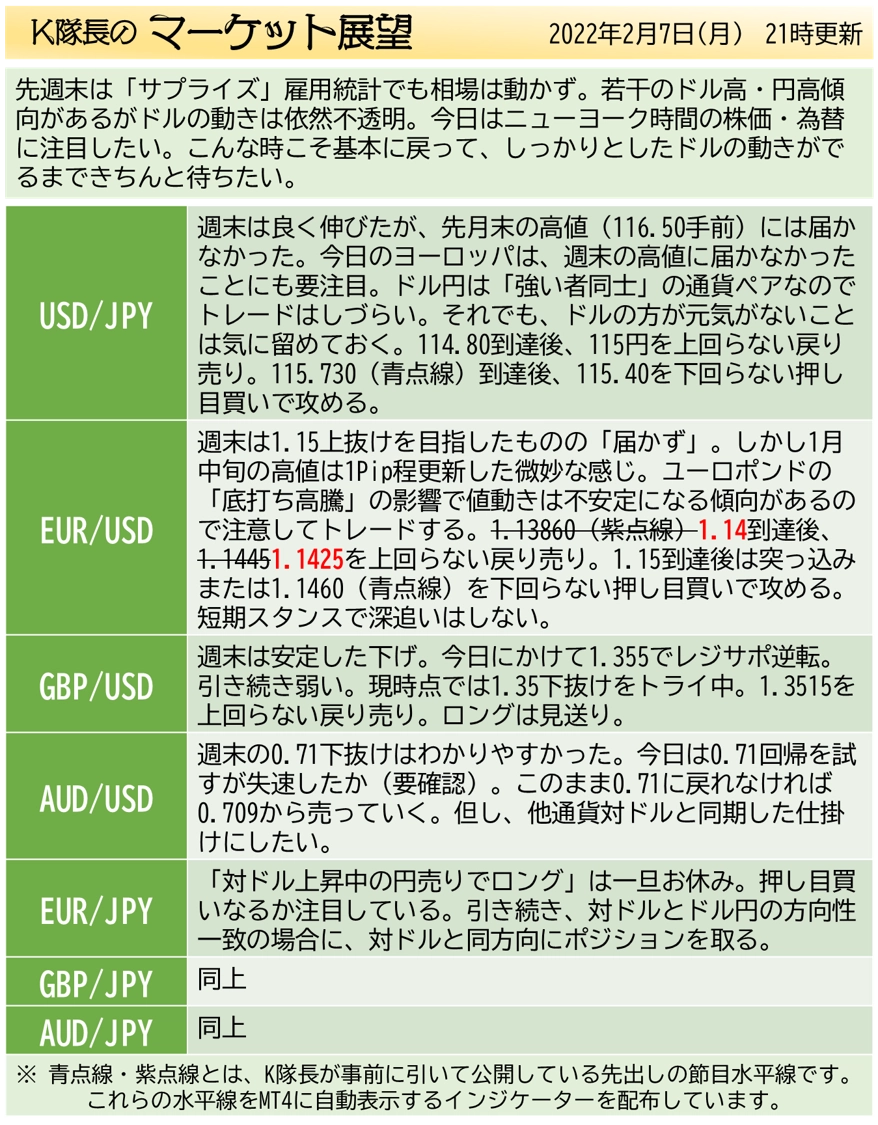 それではマーケット展望を再掲して、個別通貨ペアの解説をしていきたいと思います。