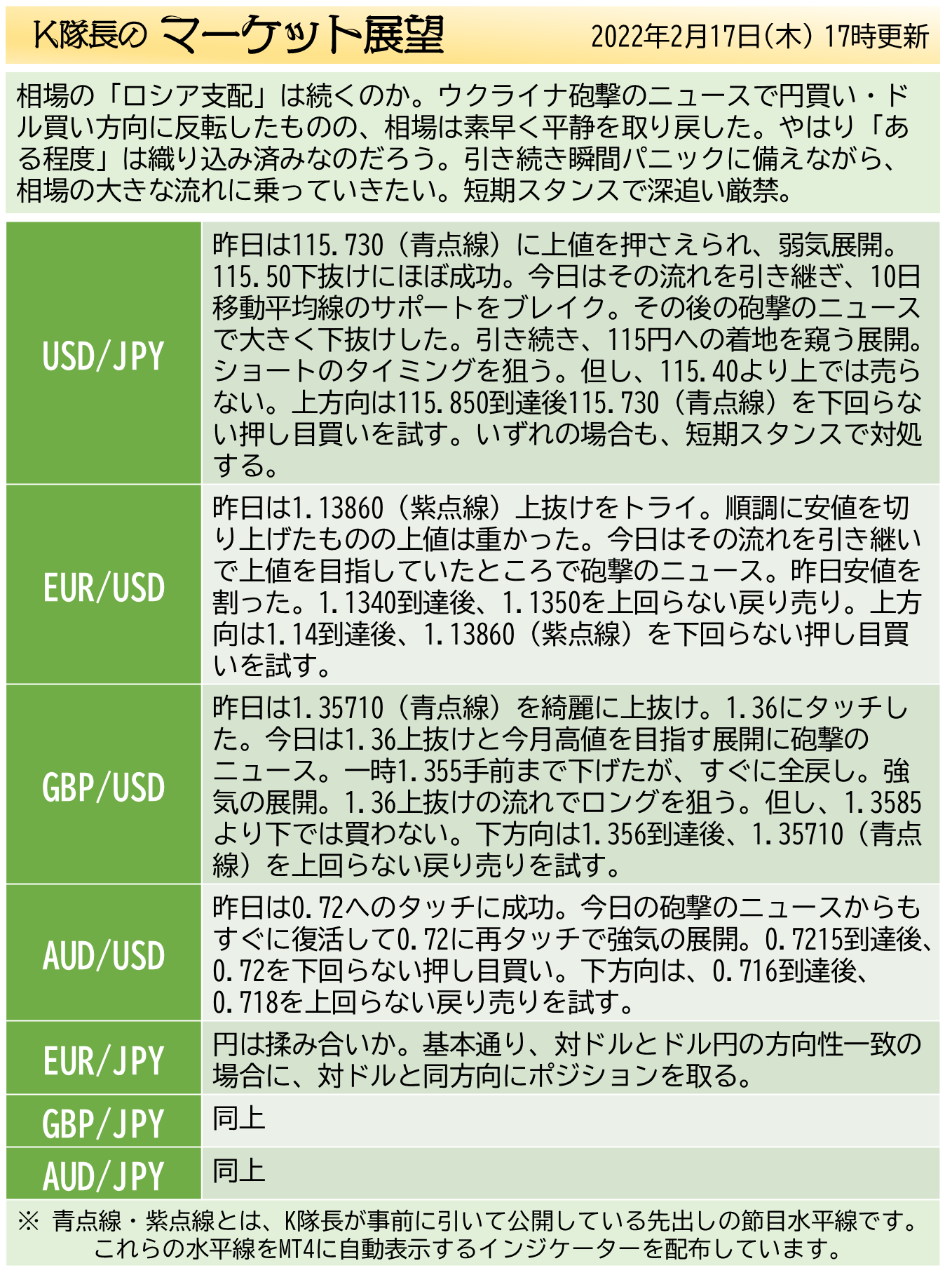 直後に、砲撃を否定する声明がウクライナから出されたこともあり、相場は逆回転。ほぼ「行って来い」となり、ドル円やポンドドルは、ニュース以前のトレンドを再開しています。