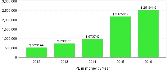 【スプレッド0.5pips、単利1.0ロット 2012年~2016年5年間バックテスト】