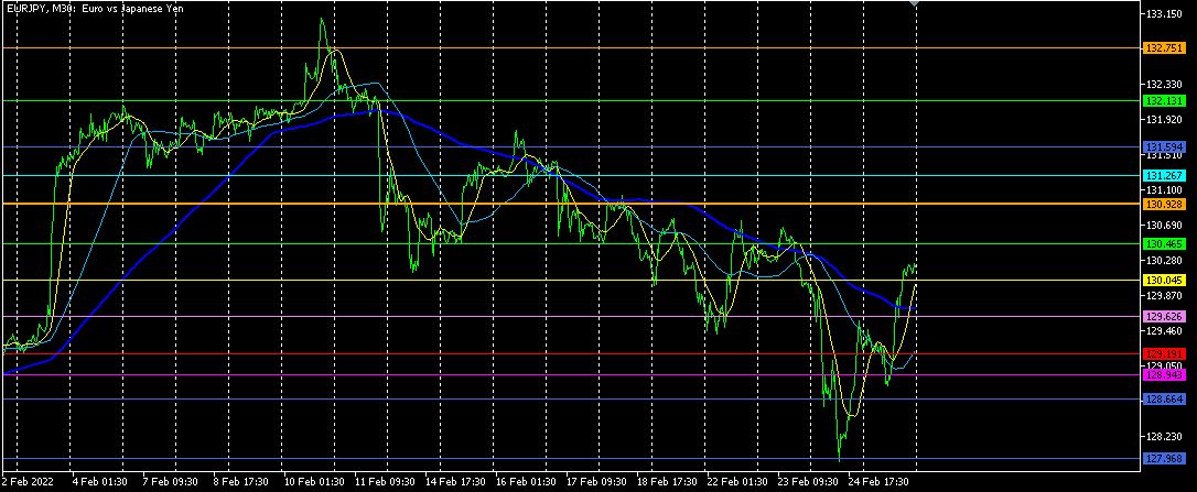 全体の流れを見るため、30分足チャートで直近約3週間分を描いています。