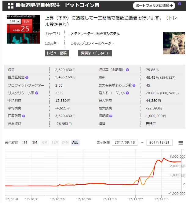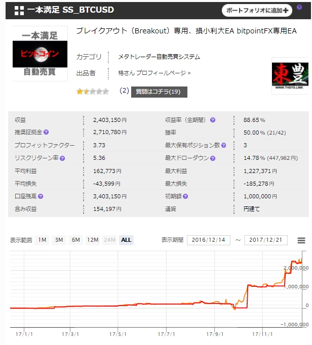 BTCUSD、BTCJPY、BTCEURの3通貨でブレイクアウトを狙うEAです