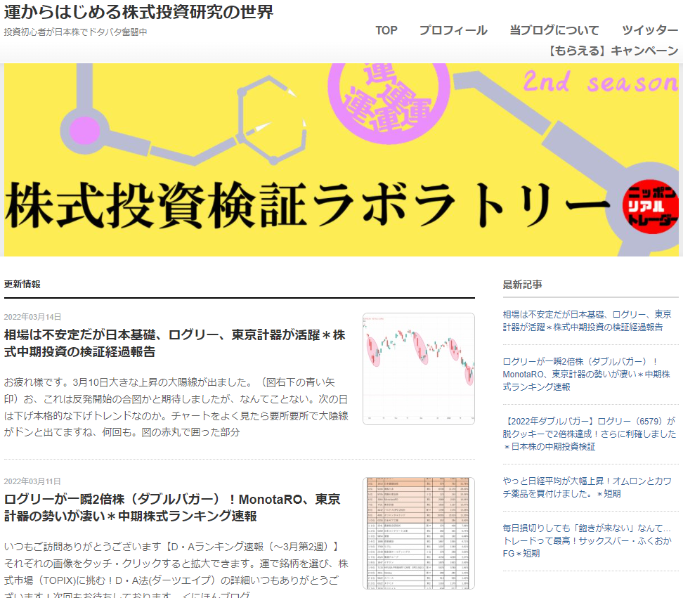 基本的に検証結果中心の内容ですが、とにかく楽しく株式投資を学びたい!という想いでやっています。
