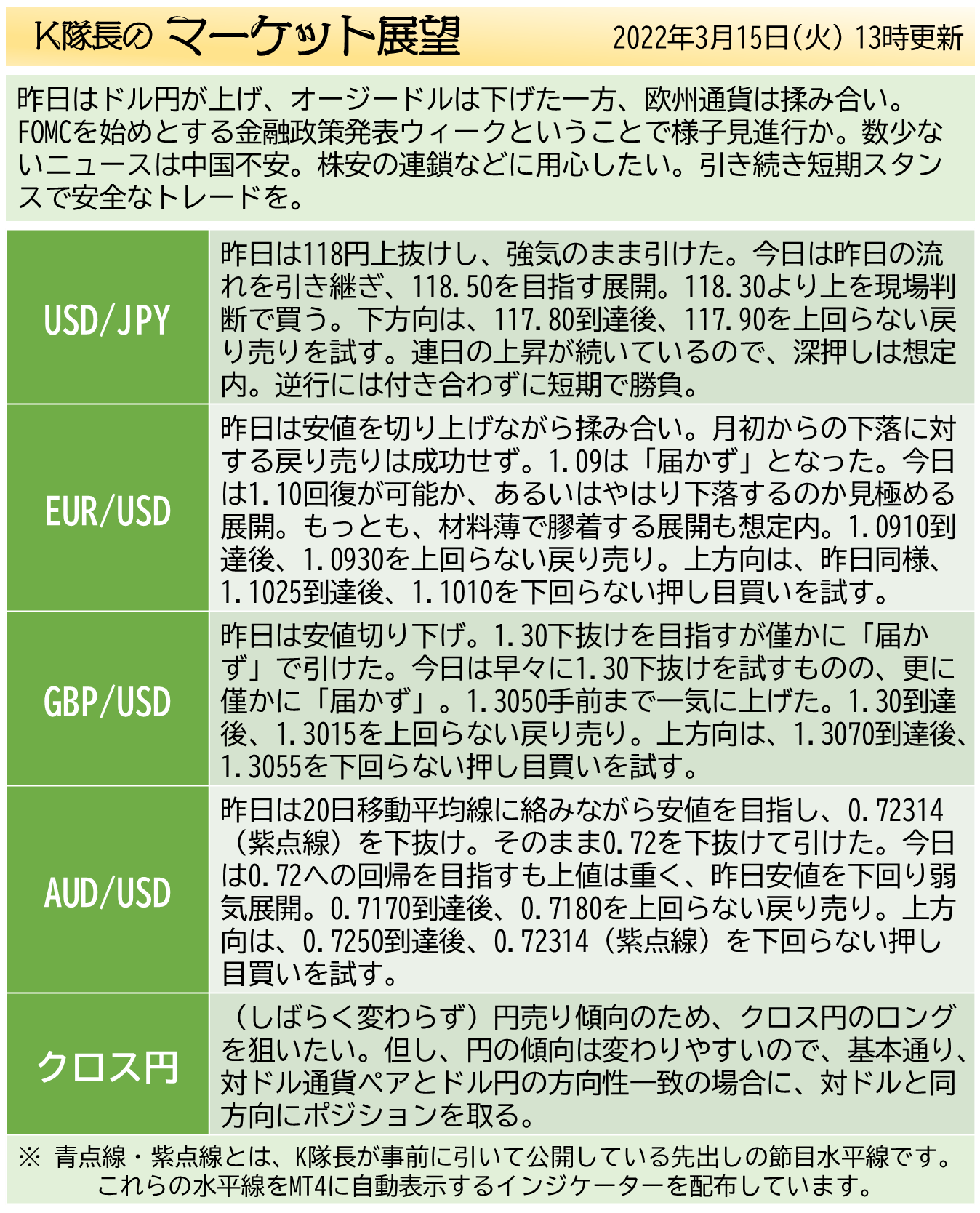 今週はFOMC待ちということで動きにくいタイミングです。一方、ウクライナ関連のニュースについてはかなり過敏に反応しやすい状況にもあります。
