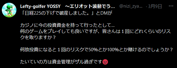 資金管理 ~アマチュアはかなりのリスクテイカー~